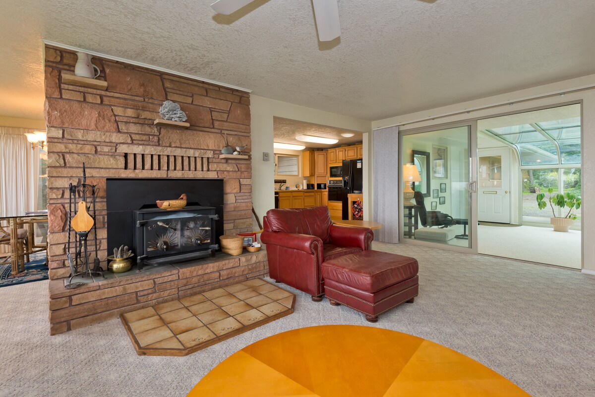 Cómoda casa de campo estilo estudio de 400 pies cuadrados sin escalones con concepto abierto. Con 5 acres pintorescos entre Sequim y Port Angeles, los huéspedes tienen la ubicación perfecta para estar cerca del Parque Nacional Olímpico, excursiones y atracciones turísticas. Esta acogedora casa lejos de casa cuenta con ducha a ras de suelo, cocina completa (abastecida con lo esencial), aire acondicionado y calefacción, patio al aire libre, cama tamaño queen, sofá cama doble, chimenea eléctrica, TV y wifi Starlink de alta velocidad. ¡Cabaña construida con material reutilizado en su mayoría!