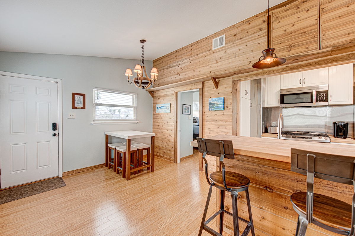 ¡Ponte salado en esta dulce y recién renovada casa de campo costera! Pequeño en precio, grande en comodidad. No hay necesidad de sacrificar una estancia increíble en Rockport: somos fáciles con tu presupuesto, pero grandes en ofrecer una gran experiencia. Te encantará la decoración playera de esta joya costera de 2 dormitorios y 1 baño. Nuestra cocina está totalmente equipada y se proporcionan todas las sábanas. A solo unos pasos, encontrarás nuestra relajante zona de piscina con acceso a la playa, con baño en el lugar. Estamos a 5 minutos en coche de Fulton/8-10 a RKPT Beach