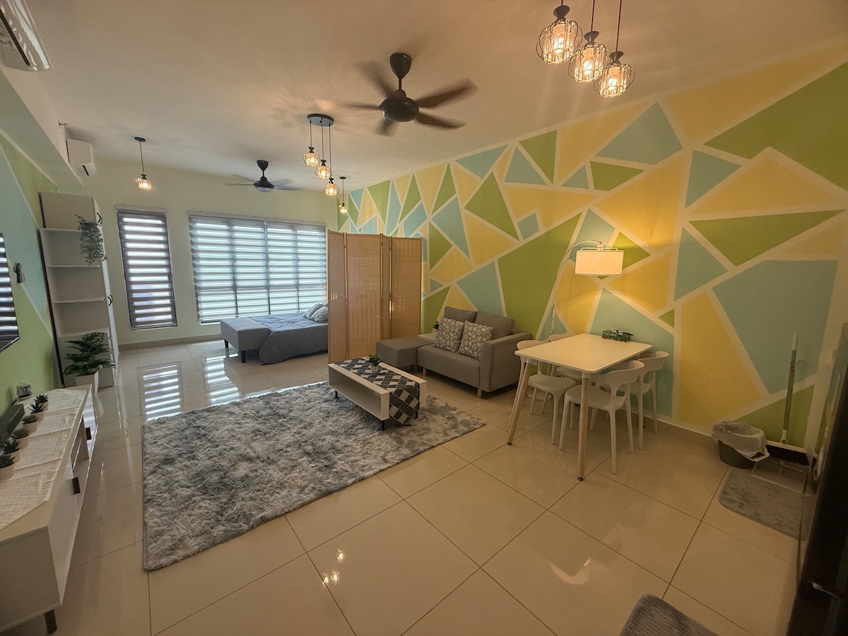 Acogedor estudio verde con balcón cerca de Ikea Damansara