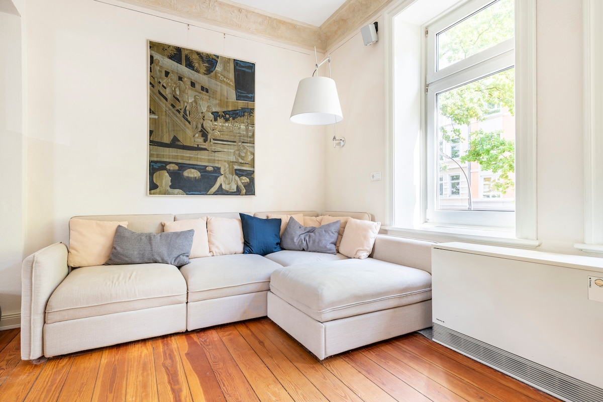 Apartamento individual de construcción antigua en la planta baja, de más de 120 metros cuadrados y reformado con cariño en las inmediaciones del Alster. Muy céntrico y fácil de llegar en autobús y tren. Estación de carga e-charging frente a la puerta. Punto de carga 4144/ 4145 22kW AC Socket Tipo-2, Stromnetz Hamburg GmbH . Restaurantes, cafeterías y muchas tiendas a poca distancia a pie.