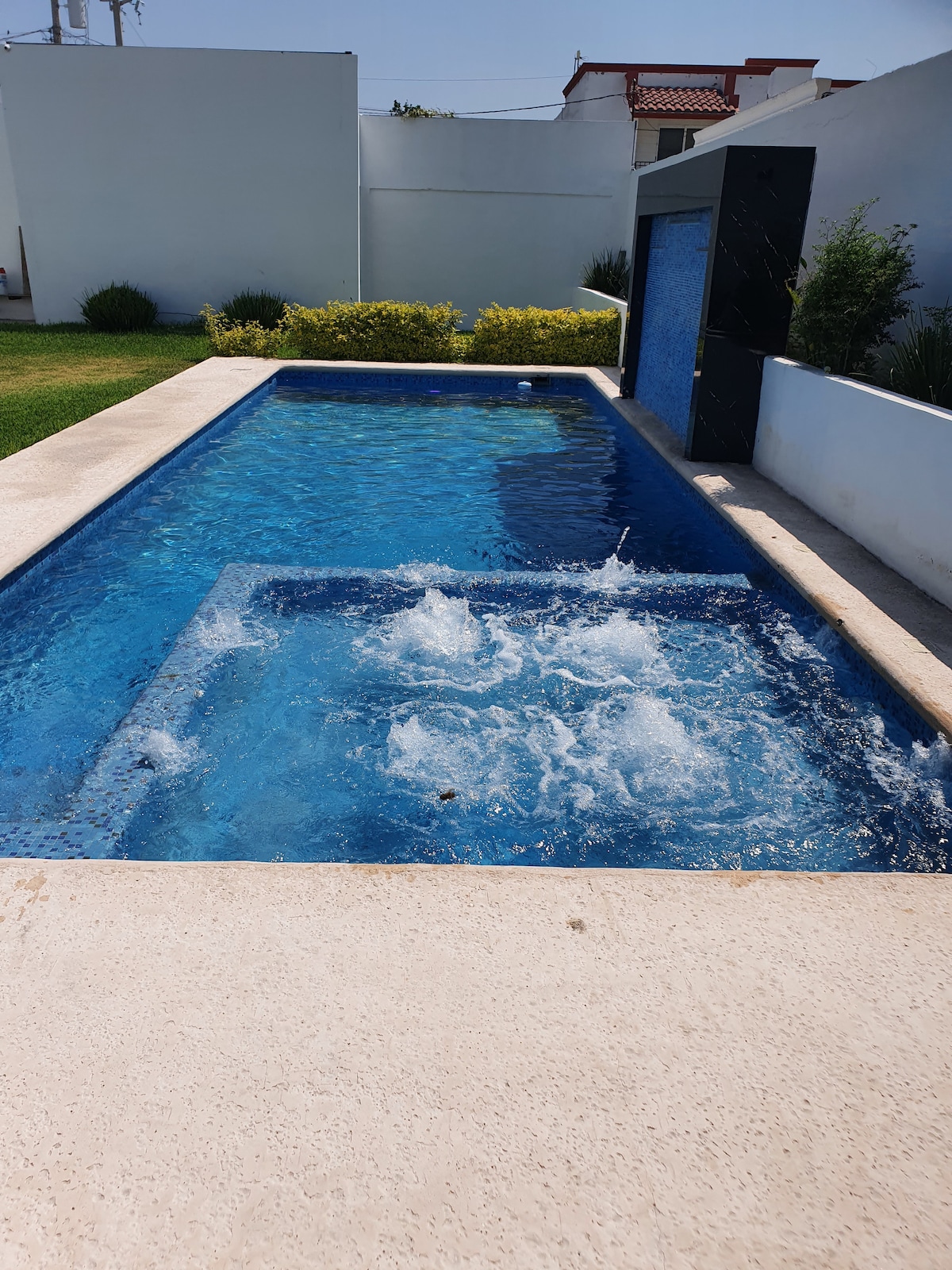 Casa Turquesa cuenta con una pequeña alberca 3x3 y 1.60 mto. de profundidad ( NO CLIMATIZADA ) Ideal para descansar después de un día largo de trabajo o si vienes de paseo con tu familia. (NO SE PERMITEN FIESTAS) (NO SE PERMITEN MASCOTAS) Estacionamiento para 2 autos. Tenemos 2 tinacos 700 y 1200 lt *Cámaras de seguridad afuera de la casa** Estancias largas estamos en contacto para el mantenimiento de la alberca. Checar Manual