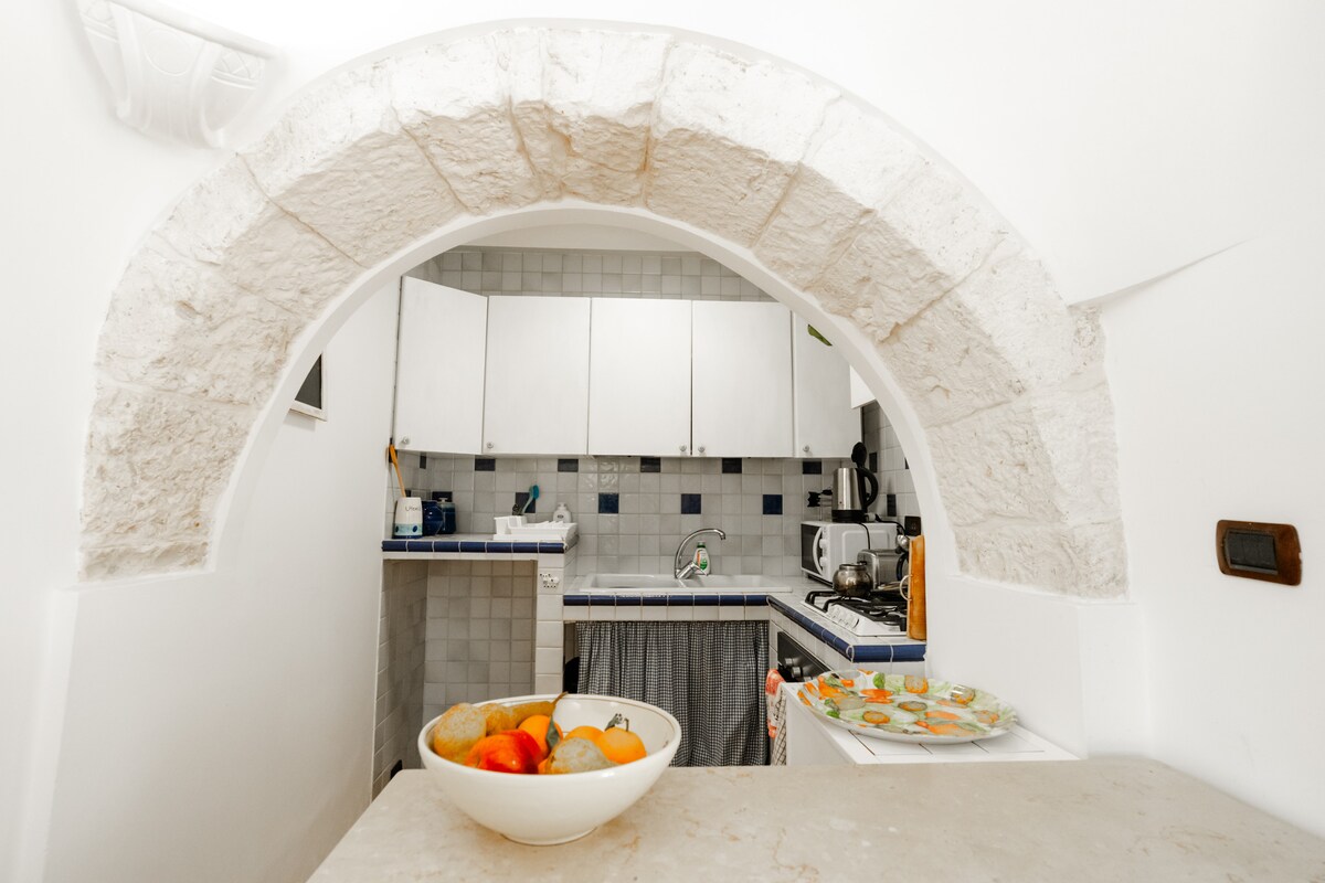 Apartamento completo formado por dos trullos y una lamia situados en el corazón del valle de Itria, con un dormitorio, sala de estar con cómodo sofá cama doble, cocina y baño. A pocos kilómetros de Alberobello, Martina Franca, Cisternino, Ostuni, Locorotondo y el zoológico Safari de Fasano. A 20 minutos de la costa adriática con Monopoli y Polignano y a 45 minutos de la costa jónica. Situado en campo abierto, goza de la tranquilidad y las vistas típicas de Apulia. CIF: IT074012C200085150