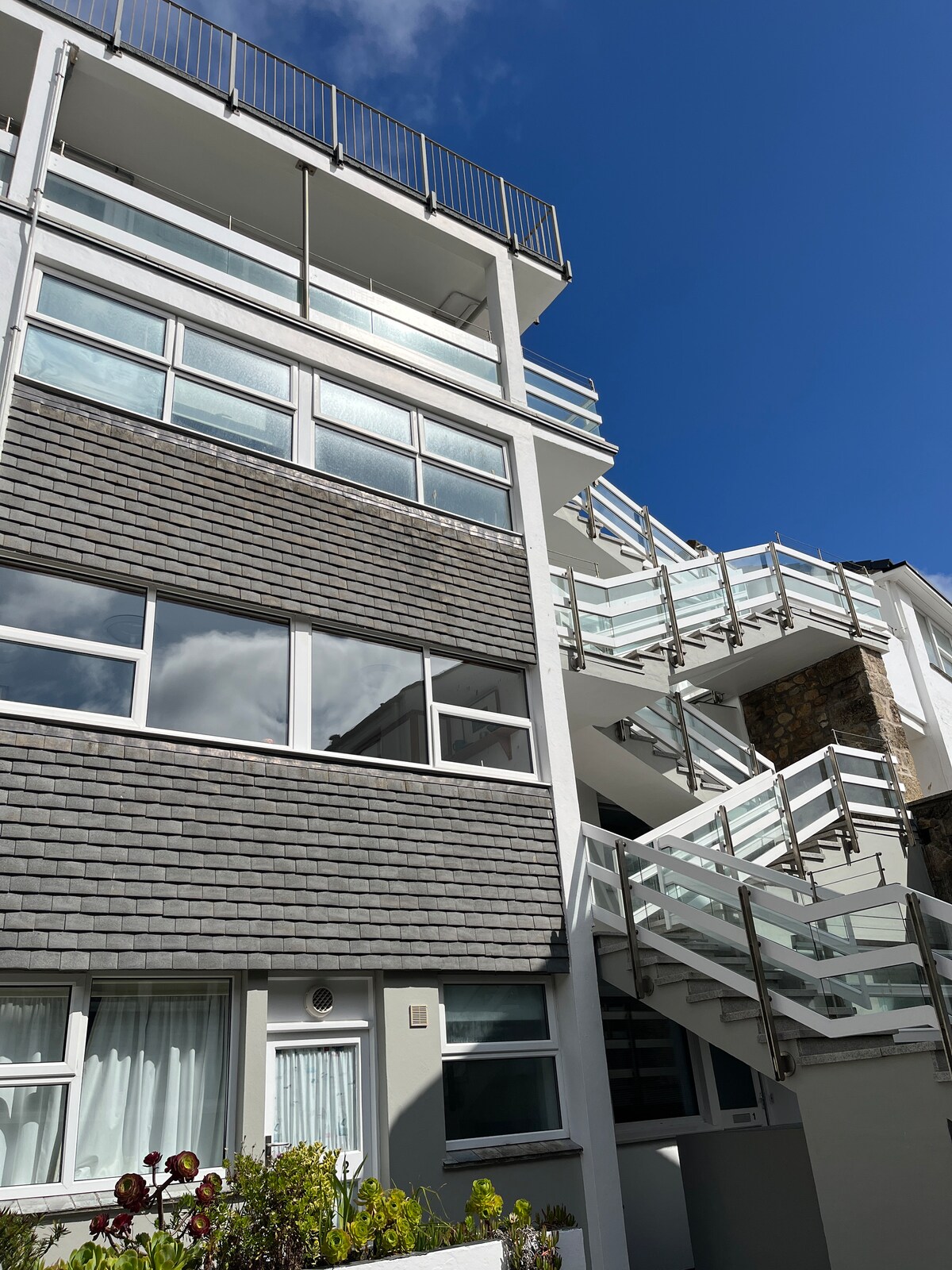 La amplia vista costera desde nuestro apartamento del centro de la ciudad es la misma que describe Virginia Woolf en su novela Al faro, inspirada en los veranos en St Ives: «hasta donde alcanzaba la vista, desvaneciéndose en suaves pliegues bajos, las dunas de arena verde, huyendo a algún país lunar». Tranquilamente escondido, el apartamento está idealmente situado para las vacaciones de verano e invierno, y el trabajo a distancia. El puerto está a dos minutos a pie, las playas de Porthmeor y Porthminster están a poca distancia a pie. Lo sentimos, no se admiten mascotas. No se puede fumar.