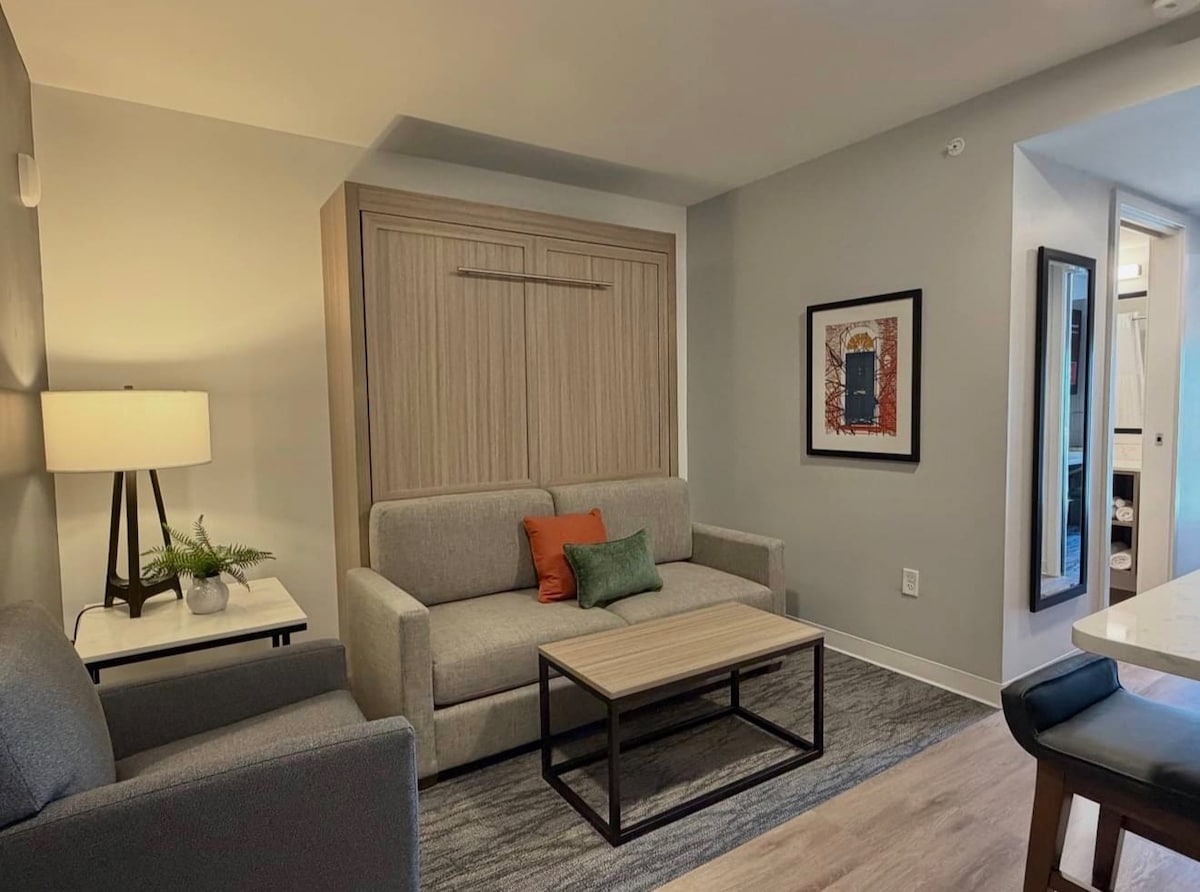 Diseñamos cada suite pensando en las estadías prolongadas. Las amplias habitaciones y baños ofrecen la máxima comodidad, mientras que una cocina totalmente equipada te permite cocinar y cenar a tu ritmo. Manténgase productivo con Internet confiable de alta velocidad y espacios de trabajo dedicados, y mantenga su rutina de bienestar en nuestro gimnasio en el lugar. Con acceso las 24 horas, los 7 días de la semana a nuestras instalaciones de lavandería, todo lo que necesitas está aquí. Diseñados con esmero, asequibles, elegantes y hechos a mano para que te sientas como en tu propio espacio.