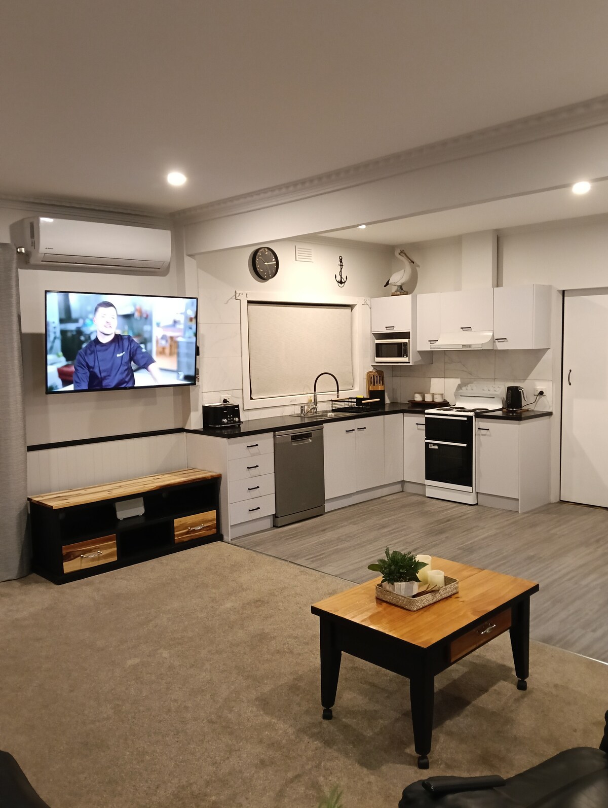 Curragh Cottage is a lovely one bedroom flat attached to the back of our home. It has undercover parking and is 18 minutes walk from the main shopping centre and beautiful beach. Tea and coffee provided. We are a hospitable family who love to travel ourselves & enjoy meeting new people. We speak English, German, French & Albanian and would love to learn how to greet you in your own mother tongue! WiFi available.