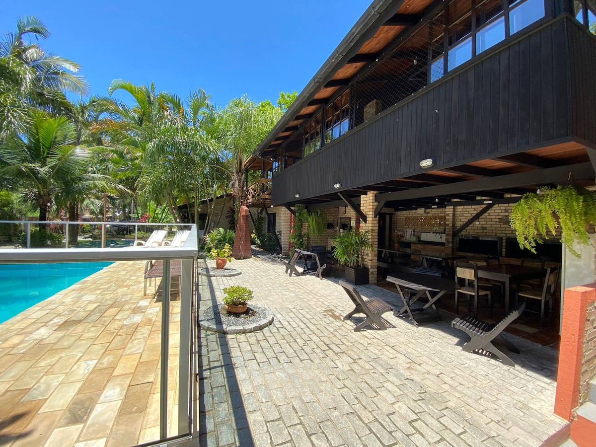 Casa para 14 personas - ¡Frente al mar, con los pies en la arena! Con jacuzzi para 7 personas - con opción de agua fría o caliente ¡Cama elástica para niños! Jacuzzi para 7 personas En Instagram, vea en casadoaraca Casa ideal para quienes les gusta disfrutar de la tranquilidad, la comodidad, la playa y la vista al mar, para quienes tienen niños y/o jet ski o barco. Insta: Casadoaraca