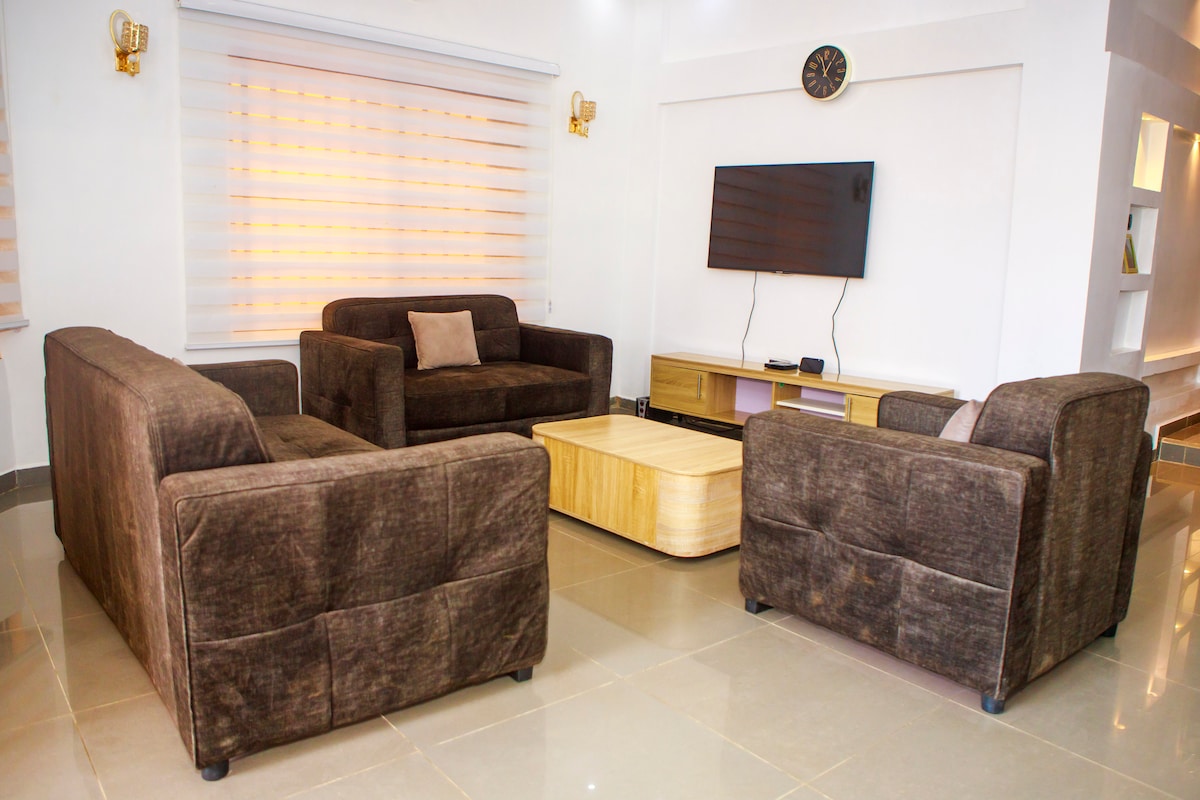 Welcome to Residence Les 6 Roses: Your Spacious Cozy Home in Porto-Novo! 1st Floor 4BR Spacious Entire Apt. Fast WiFi King Beds Ideal fo special large groups. - You'll have the entire 280m2 apartment - Your electricity is counted in advance here as a community fee - Convenient in-bedroom 43" smart TV with all your preferred movies and channels - AC and ventilation for comfort - Jack and Jill Italian shower with hot water Please kindly note that there are no refunds for incorrect guest counts.