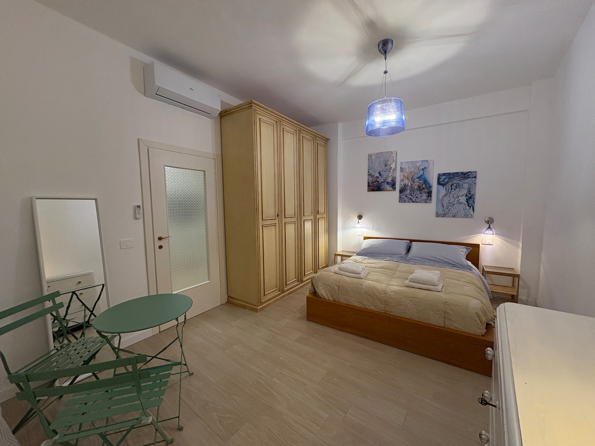 Estudio con entrada independiente que consta de cama matrimonial, sofá cama matrimonial ( para un adulto O dos niños, que se considerará como extra con un costo de EUR 25,00 por noche), baño con ducha, cocina americana, terraza cubierta con mesa de centro y sillas. Amueblado y equipado con buen gusto, TV y Aire Acondicionado. Inmerso en la naturaleza. El desayuno está incluido en el precio en la fórmula de b&b ( no en temporada alta y/o fórmula de casa de vacaciones).