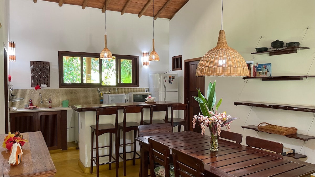 Nuestra casa tiene el privilegio de tener una reserva ambiental con diversidad de aves y monos en el fondo. En una zona céntrica muy tranquila, tenemos hoteles, posadas y condominios alrededor. Ubicación perfecta y fácil acceso a las playas, ferry Arraial D'Ajuda/Trancoso, Ciudad Histórica, pasarela del alcohol, etc. y a 5 minutos del aeropuerto. A pocos pasos encontrarás restaurantes, bares, gimnasios, supermercados, hospital, farmacias, etc. ¡Será un placer recibirle aquí!