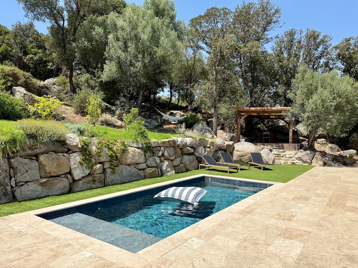 🌿 U Cantonu di l’Arti – Villa d’architecte avec piscine chauffée et vue montagne située à Sotta 🌄 Nichée dans un cadre naturel préservé, U Cantonu di l’Arti est une villa d’exception où l’architecture moderne se marie parfaitement avec la beauté sauvage du paysage corse. Conçue pour se fondre dans la végétation et les rochers environnants, cette villa vous invite à vivre un séjour raffiné, alliant confort, calme et vue imprenable. PISCINE FERMÉE DU 1ER DÉCEMBRE AU 1ER AVRIL