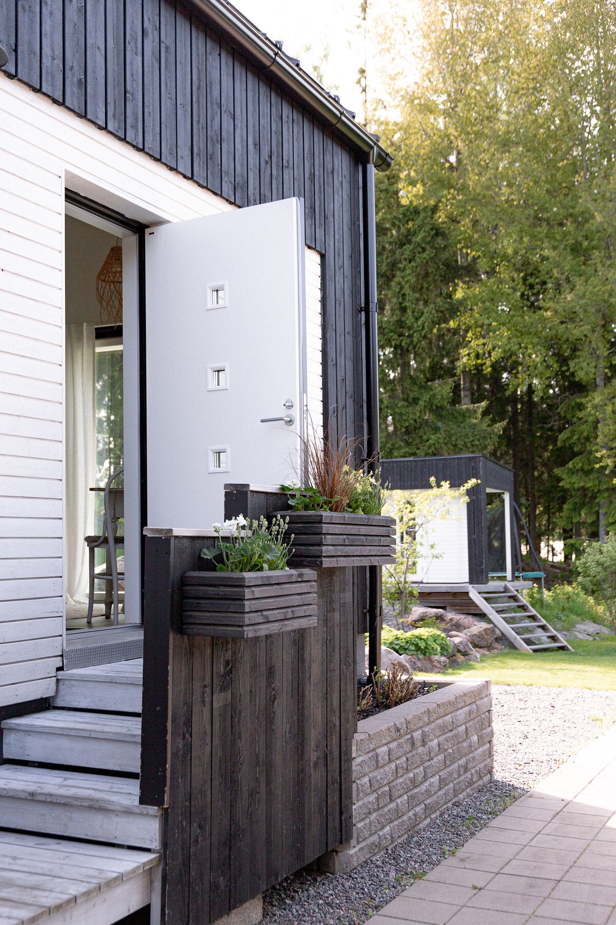Una casa de campo en el patio atmosférica donde la mente y el cuerpo descansan. El edificio ha sido completamente renovado en 2017-2019. En una terraza cubierta, una acogedora zona de estar y un jacuzzi, cuyo uso está incluido en el precio de la estancia. La cabaña tiene un ambiente tradicional finlandés al que también se ha añadido un toque de brisa oriental. Desde el suave vapor de la sauna de madera, es agradable ir a la cubierta a refrescarse y disfrutar de un entorno de patio protegido y tranquilo. La cabaña tiene calefacción y aire acondicionado que añade comodidad al calor del verano.