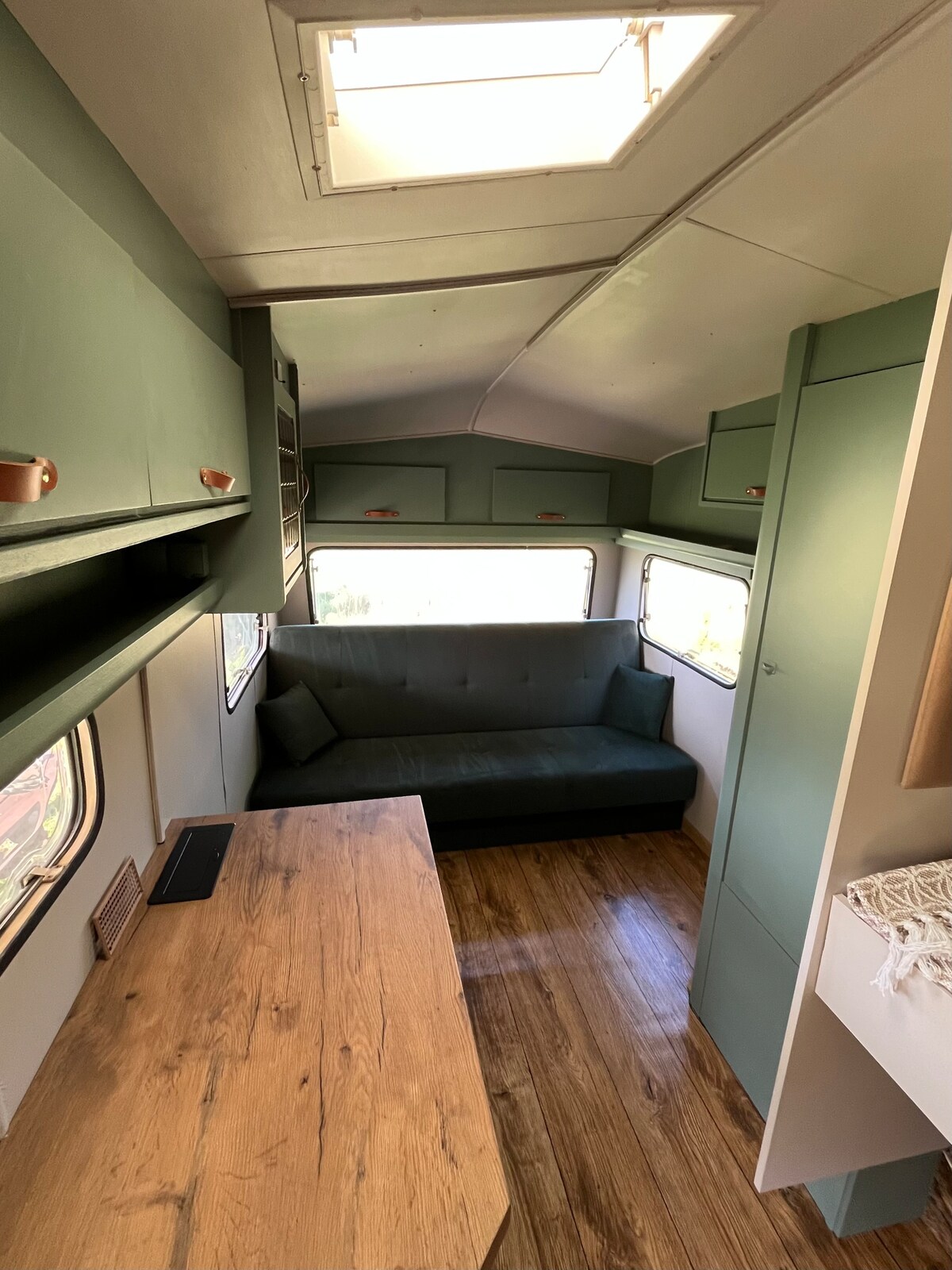 Zatrzymaj się w niebanalnym miejscu! Nasz kamper to idealna przestrzeń do wypoczynku. Choć nie jeździ – zapewnia pełen komfort stacjonarnego pobytu, jak w małym apartamencie… tylko bliżej natury 🌲 🛋️ Wygodna sofa i oddzielne miejsce do spania (idealne dla 2–4 osób) 💡 Jasna, funkcjonalna przestrzeń z dużą ilością schowków 🍳 Zewnętrzna kuchnia z niezbędnym wyposażeniem 🚿 Prysznic i toaleta 🔥 Możliwość wieczornego ogniska lub grilla (na życzenie)
