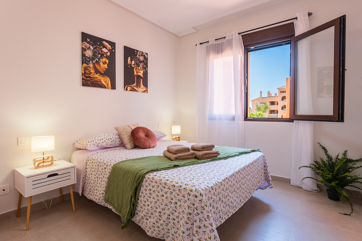 Las Vistas del Mariló es un apartamento premium completamente renovado con espacios diseñados para el confort y el bienestar. Se encuentra rodeado de un campo de Golf, esta en una zona tranquila y brinda comodidades como piscina comunitaria, TV en todas las estancias, iluminacion de ambiente y un amplio balcon con vistas al campo de Golf y el Mar Menor. Esta completamente equipado para una estancia placentera y comoda. Este oasis de relax es perfecto para familias, viajeros y parejas.