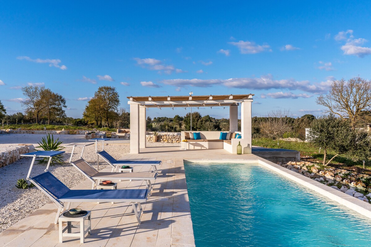 Esta villa y trullo de 1780, llamado trullo Fedele Bonotto, han sido completamente restaurados, pero aún se encuentran entre los olivos centenarios de la zona. Admira las históricas paredes de piedra, relájate en la piscina privada y el solárium, y disfruta de la hermosa zona del jardín, todo exclusivo para los huéspedes y su privacidad. El personal que se encarga de la limpieza de los espacios externos e internos de la propiedad sigue estrictamente las normas sanitarias previstas para la COVID-19. Antes de la llegada de cada huésped, se lleva a cabo un saneamiento completo. El tamaño de la casa y el gran jardín garantizan absolutamente las distancias de seguridad social y sin contacto. La villa, con olivos centenarios, tiene un comedor y una cocina totalmente equipada con utensilios y vajilla, lavavajillas, nevera y horno. Gracias a un pasillo se llega a los dos dormitorios dobles, cada uno con su propio baño. Separado de la villa, con entrada independiente, se accede al trullo, de unos 50 m2 de superficie, donde hay una cama doble, un sofá cama doble y un baño privado. En la zona exterior hay una gran mesa con 10 sillas, varios asientos, una barbacoa y la piscina para uso exclusivo de los huéspedes. También está unido a la villa el cuarto de la caldera con lavandería, completo con lavadora. ¡Toda la estructura es para uso exclusivo de los huéspedes que pueden vivir en estos momentos inolvidables de descanso y tranquilidad! Los huéspedes tienen el uso exclusivo de toda la villa y del trullo adjunto, y de toda la zona al aire libre, que incluye la sala de estar, la piscina y la lavandería. Inmersa en la impresionante campiña, la casa está situada cerca del centro de Ceglie Messapica. Cena en excepcionales restaurantes de propiedad familiar, navega por los mercados locales y da un paseo a pie o en bicicleta por los valles. Tienes un aparcamiento para tu coche, en 20 minutos llegas a las playas del mar Adriático, en 30 minutos puedes llegar a las playas del mar Jónico.