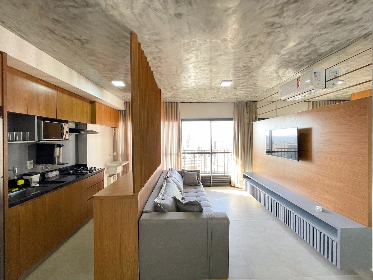 Disfruta de la simplicidad en este lugar tranquilo y bien ubicado en la mejor ubicación de Goiânia, frente a la plaza del sol, cerca de restaurantes, bares y supermercados. Apartamento completo con zona de comedor, cocina completa, smart TV con Samsung Plus, wifi, Alexa, aire acondicionado y balcón. Todo lo que necesitas para una estancia supercómoda, con garaje y recepción 24 horas.