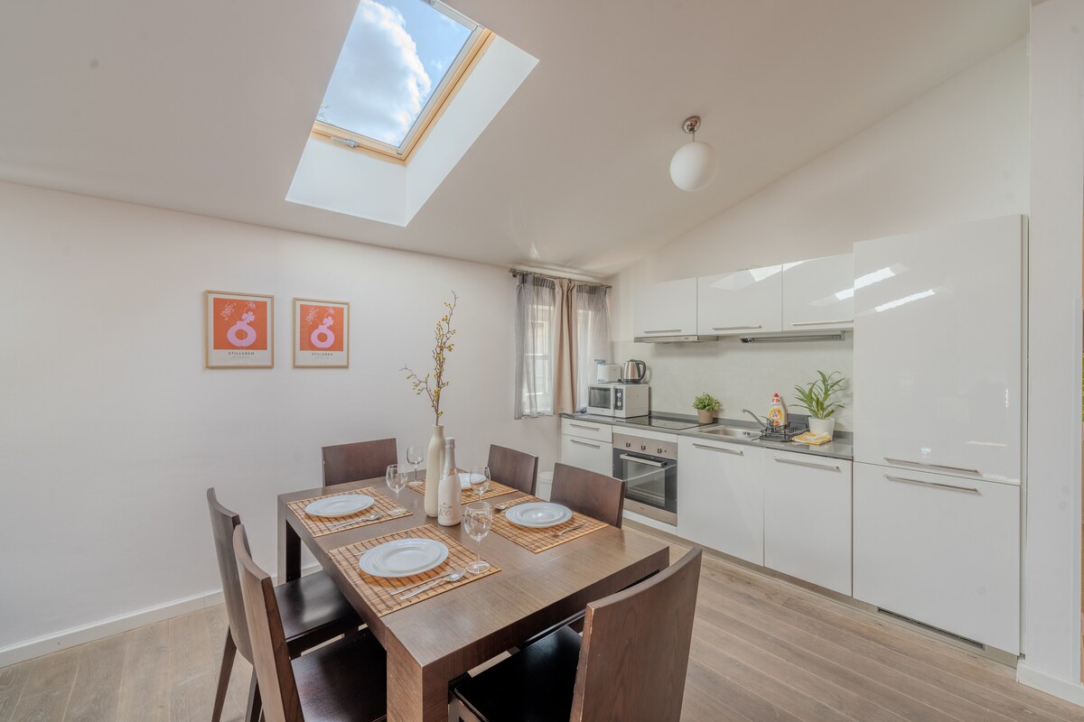 Un apartamento de dos dormitorios en el primer piso de un edificio del siglo XVI, bellamente reconstruido, el apartamento está a solo unos minutos a pie de algunos de los sitios más interesantes de Praga, incluyendo el Castillo y el Puente de Carlos. Las calles empedradas, con farolas de gas y sinuosas te encantarán. Las ventanas profundas y las paredes gruesas contribuyen al antiguo romance de este apartamento. Las impresionantes vistas del Puente de Carlos desde el dormitorio y del castillo desde la sala de estar dejarán su huella mucho después de que te hayas ido.