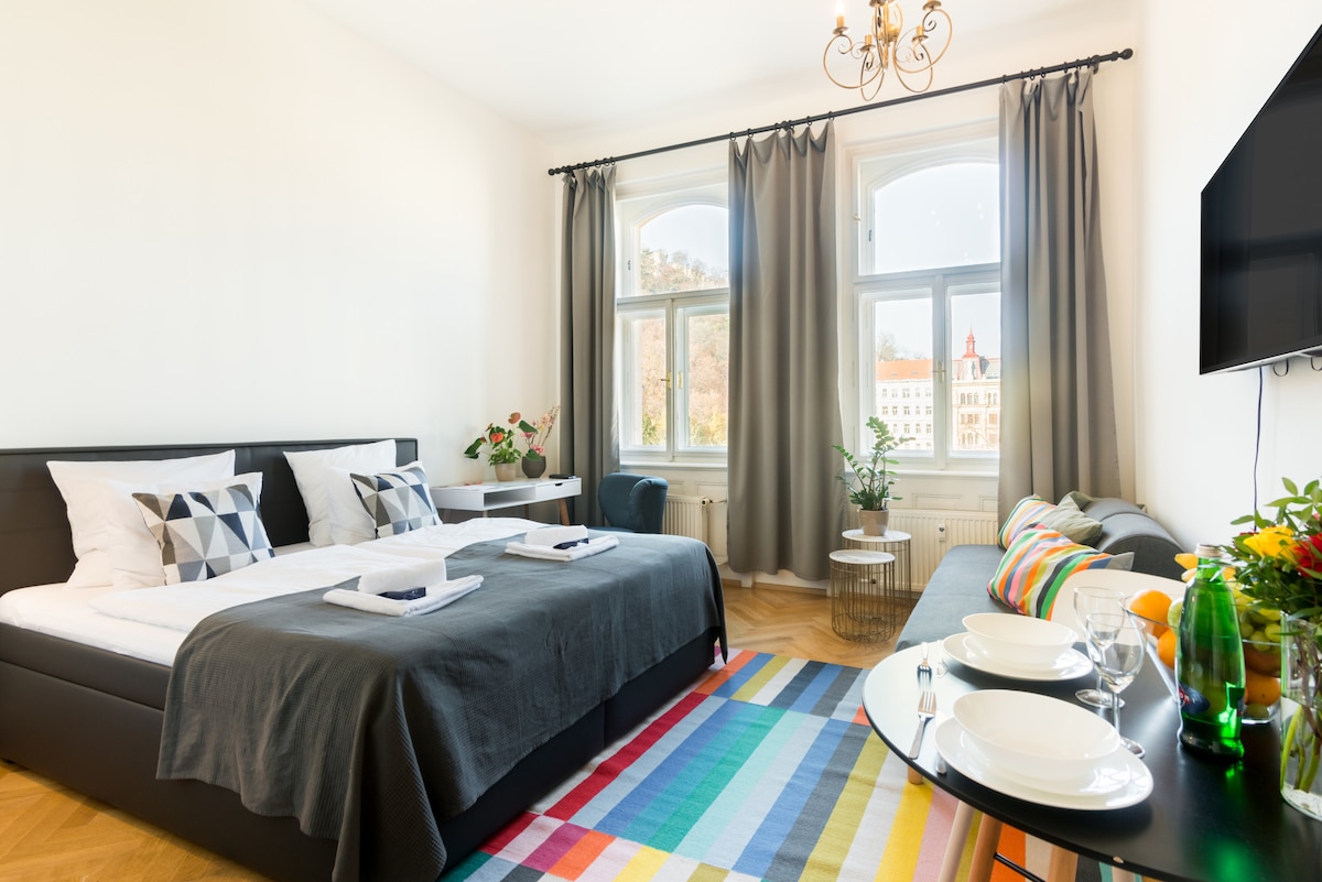 Disfruta de tu estancia en mi hermosa casa de estilo Art Nouveau construida durante la década de 1890, pero con todas las comodidades modernas que uno podría desear. Apartamento de dos dormitorios cuidadosamente renovado con amplias habitaciones con techos históricamente altos decorados con molduras de estuco ornamentadas, camas tamaño queen, internet de alta velocidad y una gran y espaciosa ducha de efecto lluvia. El lugar ideal para sentirse como en casa mientras estás en Praga, ya sea para un fin de semana largo, un viaje de negocios o, por qué no, una larga estancia. ¡Deja que mis reseñas hablen por sí mismas!