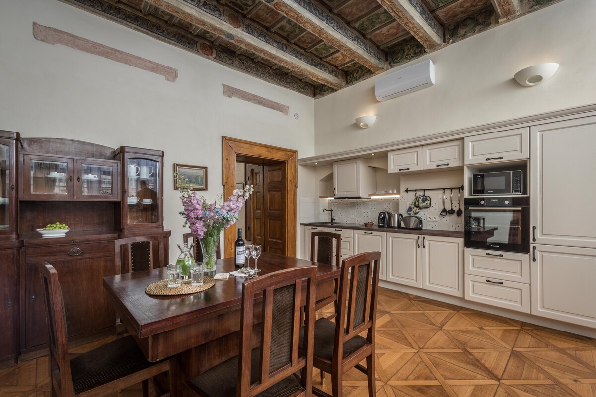 Un apartamento de dos dormitorios en el primer piso de un edificio del siglo XVI, bellamente reconstruido, el apartamento está a solo unos minutos a pie de algunos de los sitios más interesantes de Praga, incluyendo el Castillo y el Puente de Carlos. Las calles empedradas, con farolas de gas y sinuosas te encantarán. Las ventanas profundas y las paredes gruesas contribuyen al antiguo romance de este apartamento. Las impresionantes vistas del Puente de Carlos desde el dormitorio y del castillo desde la sala de estar dejarán su huella mucho después de que te hayas ido.