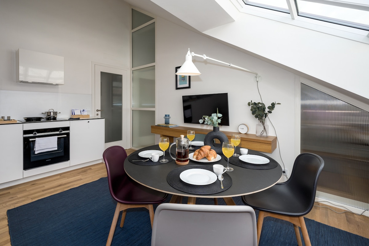 Loft soleado en ático — Corazón de la ciudad — Chimenea