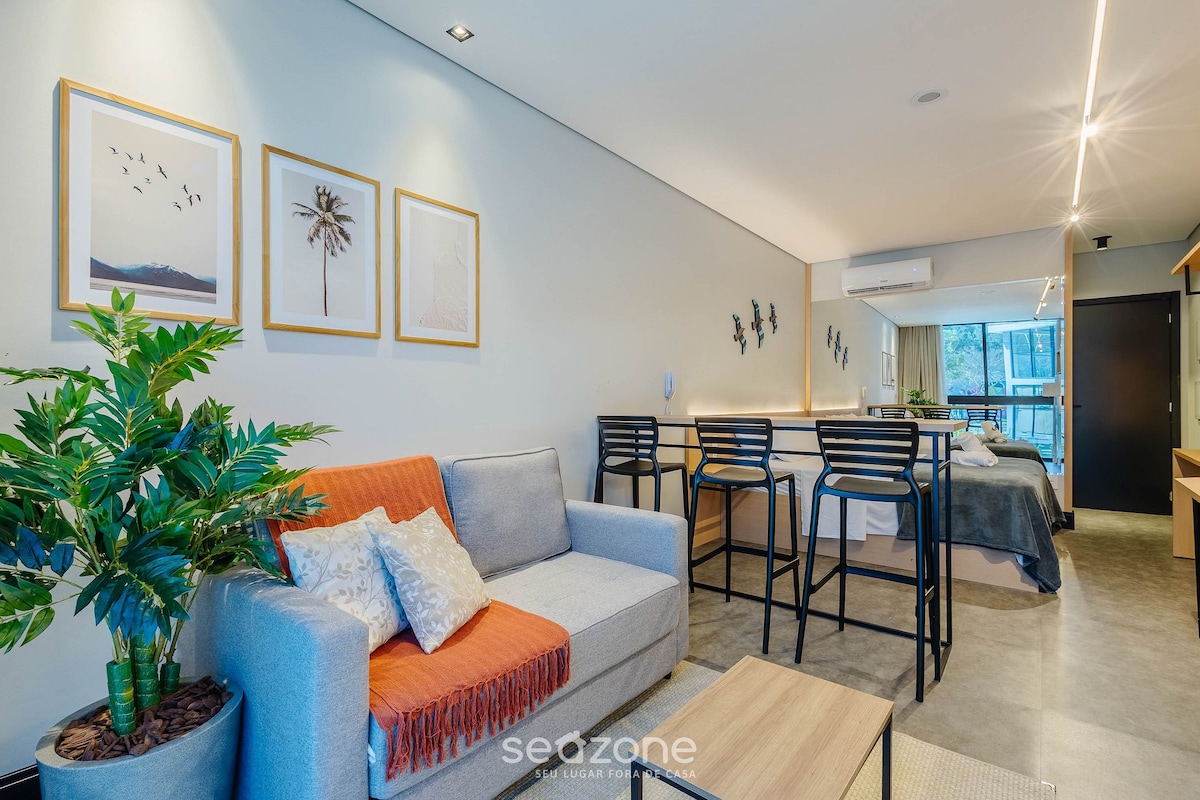 Disfruta de la experiencia única de alojarte en un loft frente al mar, con una arquitectura moderna, doble altura de techo y un encanto especial en la habitación de estilo entreplanta. Ubicado en la codiciada Praia Brava de Itajaí, este espacio es ideal para parejas, surfistas o viajeros que buscan comodidad, belleza, a solo unos pasos de la arena y cerca de los mejores clubes de playa, bares, restaurantes y senderos de la región. ¡Reserva ahora y vive días inolvidables con lo mejor de Praia Brava al alcance de la mano!