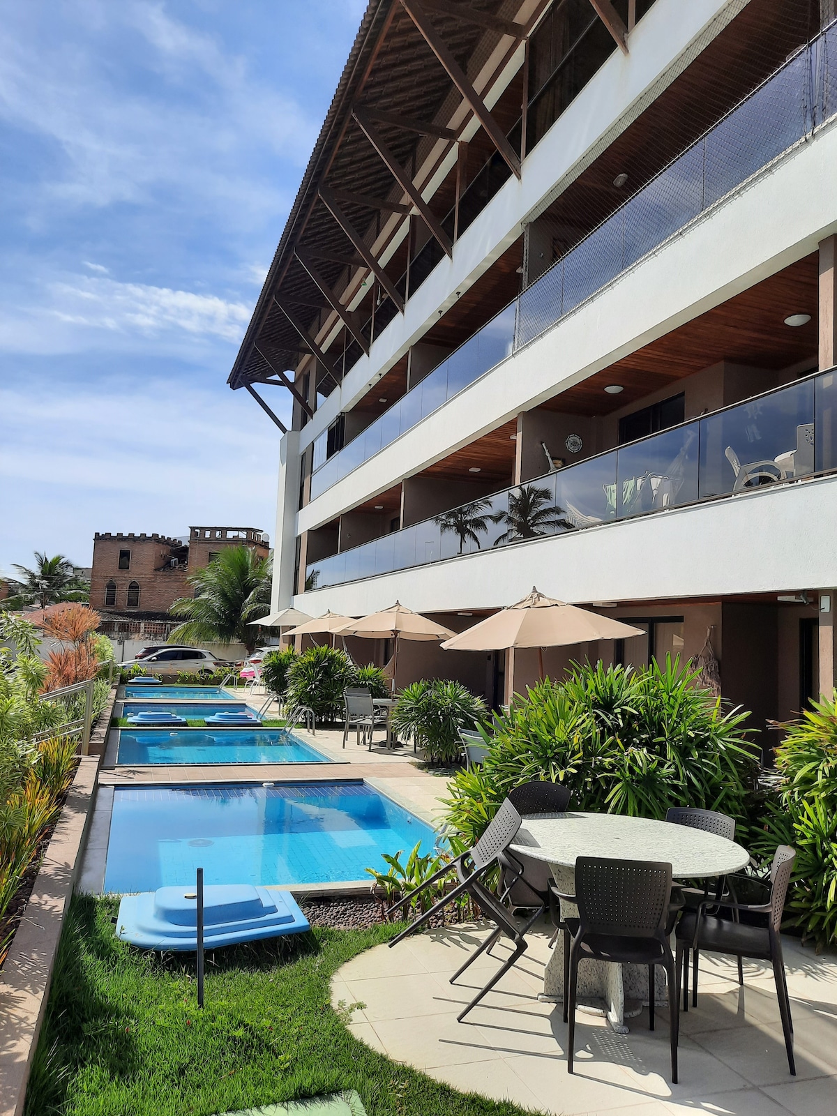 Hermoso y nuevo apartamento ubicado a 20 metros de la playa, con piscina privada, aire acondicionado en el dormitorio y en la sala de estar, con dos camas individuales y una de matrimonio, wi-fi y smartv. Ropa de cama y toallas incluidas. Cocina completa equipada con cocina, nevera y microondas. Baño con ducha climatizada. ¡Ven a vivir momentos inolvidables a pocos minutos de Porto de Galinhas y Pontal de Maracaípe!