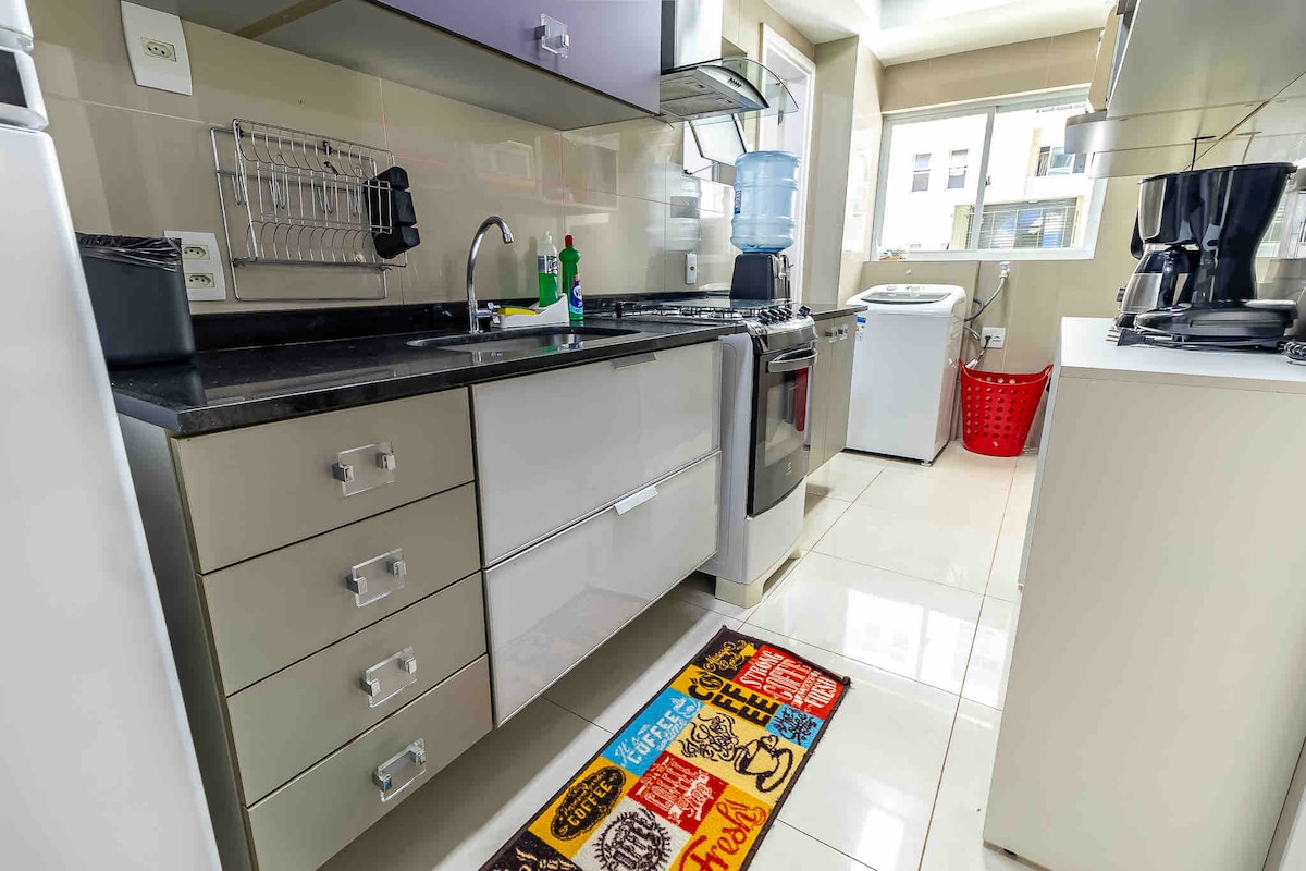 Apartamento en el edificio Australia de la torre JTR en un condominio con acceso exclusivo a la playa de Jatiúca. - Habitación con cama tamaño queen, aire acondicionado, escritorio de trabajo y Smart TV/canales por cable. - Cocina completa. - Ducha frío/calor. - Internet de 350 MB. - Televisores inteligentes con canales por cable con una buena variedad de canales tanto en la televisión de la sala como en la habitación. - Piscina en la azotea. - Asador - Garaje. - Balcón *Ofrecemos 1 (un) juego de cama y baño por huésped.*