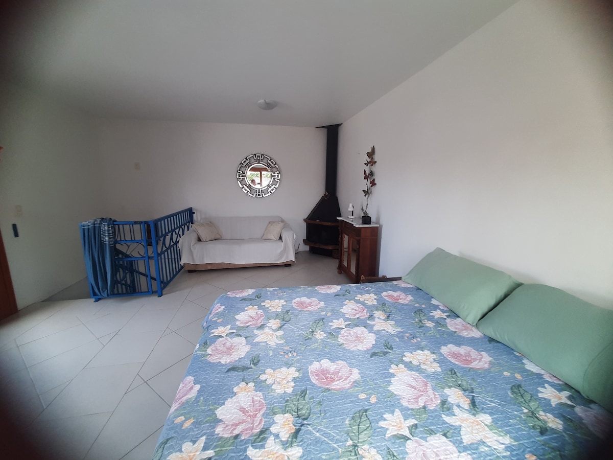 Relájate con toda la familia en este alojamiento tranquilo. Casa a 4 cuadras de la playa y a 4 cuadras de la avenida. Local sin sonido de tráfico. Amplio patio para divertirse y socializar. Churrasqueira interna y externa Sala de estar con aire acondicionado y Netflix Chimenea Habitación con piscina 3 dormitorios (1 suite con aire acondicionado) 3 baños Patio con espacio para autos Wi-Fi Praça Juego de ropa de cama Con capacidad para 8 personas