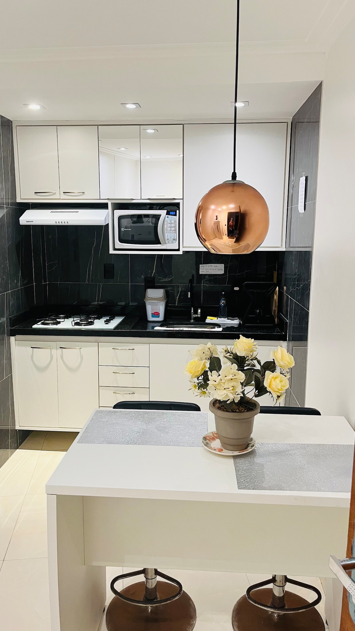 Sala de estar con cocina y acogedora habitación SEPARADA con SmartTV y aire acondicionado. Cocina con estufa, refrigerador, microondas, freidora de aire, licuadora, utensilios completos. 1 garaje y conserje 24/7. - Secador de pelo. - Plancha y tabla de planchar. - SOFÁ CAMA disponible en la habitación. - Centro de Convenciones Salvador: 1 km. (La mejor ubicación) - Restaurantes, churrascaria, pizzería, panadería, Burger King, farmacia, baiana de acarajé, compras a menos de 100 metros.