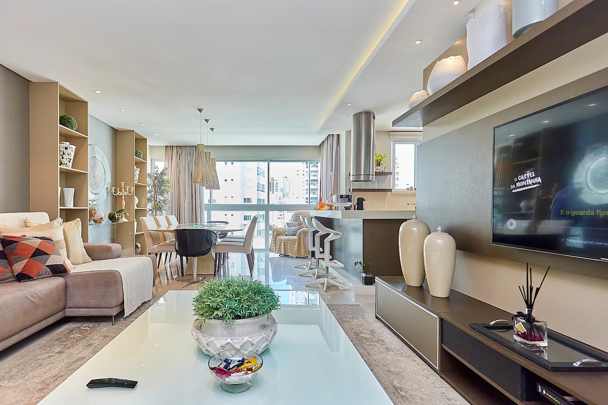 Divirta-se com toda a família e amigos neste lugar cheio de estilo. Apartamento cuidadosamente elaborado com projeto arquitetônico e luminotécnico para seu melhor conforto e dias incríveis. O espaço foi todo pensando e criado para que tenha o conforto e todos os itens necessários para uma estadia perfeita, seja de férias, descanso ou trabalho para que se sinta em casa. Localizado na Barra Sul um dos mais badalados e movimentado da cidade que também é conhecida como " Dubai Brasileira ". .