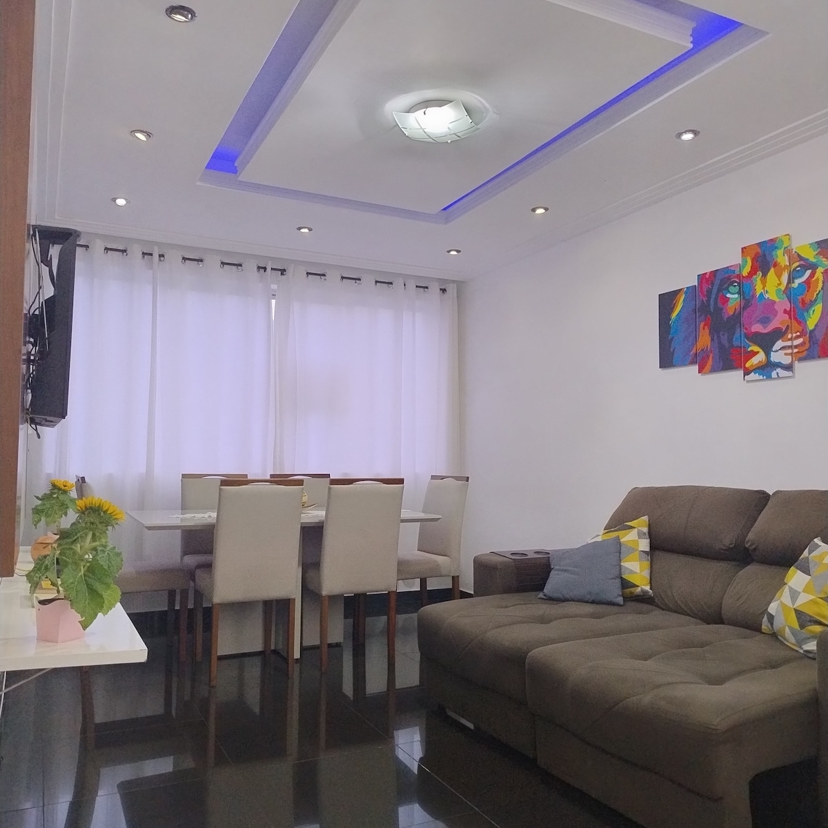 Un apartamento recién reformado y decorado que combina diferentes elementos de las playas más diversas del mundo, ubicado en el corazón de Gonzaga, junto al centro comercial Miramar. Cerca de varias opciones de ocio (3 centros comerciales, cines, restaurantes y tiendas) y ubicado a menos de 200 metros de la playa, ¡definitivamente no perderás el tiempo atascado en el tráfico! Equipado con televisión, estufa, nevera, microondas, cafetera y lavadora, es ideal para que lo aproveches al máximo con practicidad.
