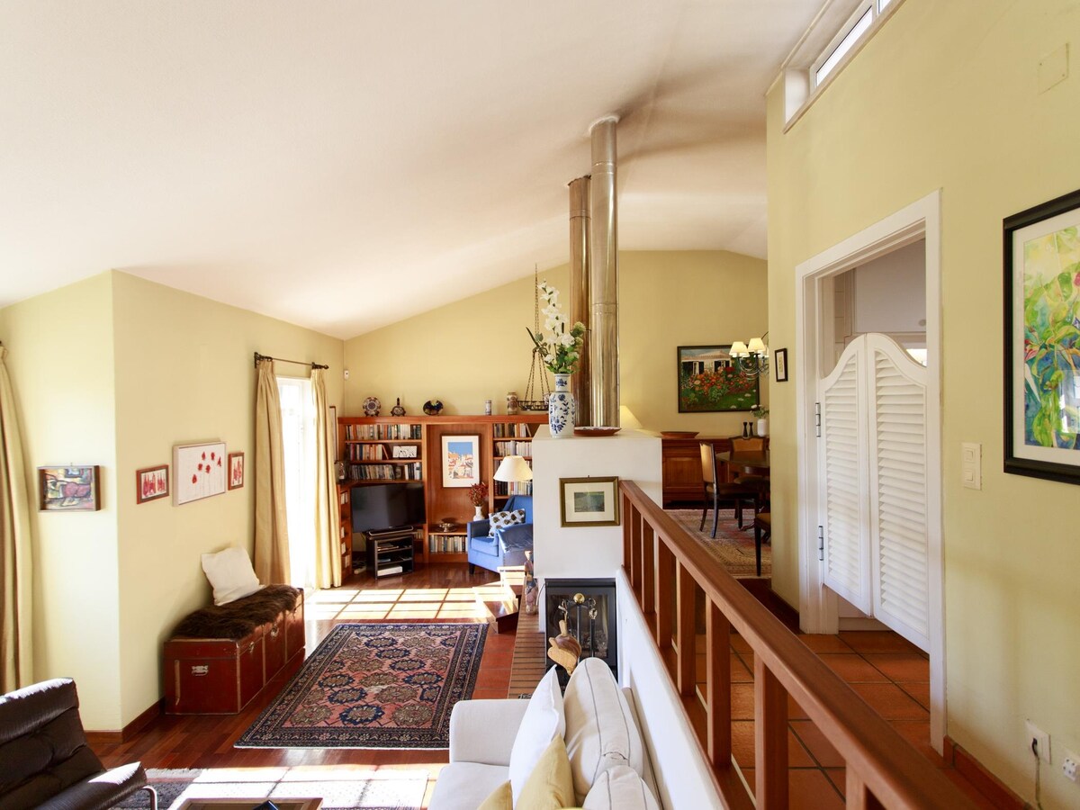 Relax in a floor-heated T1 apartment with amazing ocean/mountain views, perfectly nestled in nature. Located by Sintra-Cascais Natural Park, the space offers peace, privacy, and a 12 minute walk to Guincho Beach Also included: - Large Organic Vegetable Garden - Beautiful hiking trails outside front door - Fast wifi (200+ mbps) - Ideal location: In nature yet restaurants/supermarkets only 2km away - Very Spacious Pool - Free parking onsite - 25 min drive to Lisbon, 10 min to Cascais centre