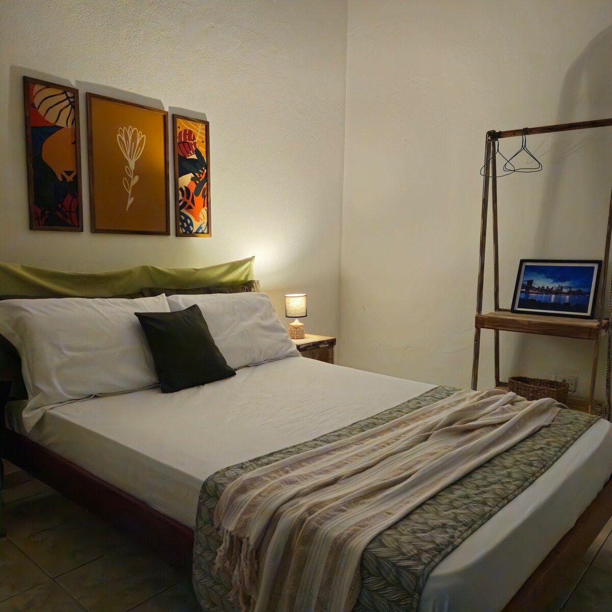 Todas nuestras cabañas son privadas, con baño, cocina completa, Smart TV y Wi-Fi de 300 Mb, lo que te permite trabajar si es necesario. También tenemos ventilador de techo en las habitaciones y balcón privado con vistas a las montañas. En general, la casa es sencilla pero acogedora, ideal para aquellos que buscan un lugar tranquilo cerca de la playa y rodeado de naturaleza, sin mucho lujo y con una excelente relación calidad-precio.