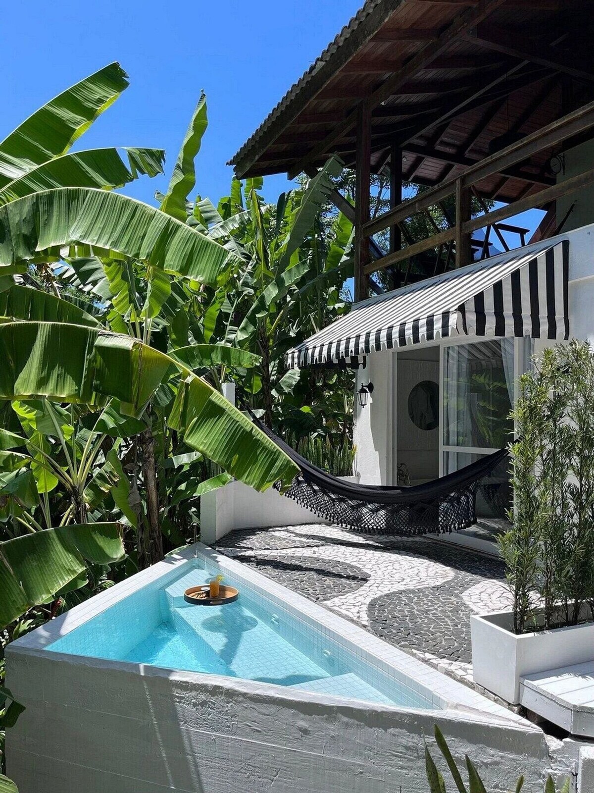 Esta suite Master pertenece a una casa de 980 metros cuadrados, tiene 120 metros cuadrados en total, una vista deslumbrante e inolvidable, rodeada de bosque atlántico y con vistas completas al mar Paz y confort en una cama super king, sábanas y toallas de Trussard, mesa de desayuno reversible, mininevera con frigobar y utensilios para el desayuno. Cuenta con jacuzzi privado, varios balcones y terrazas. Agua potable en los grifos Esta es nuestra mejor suite, un lugar encantador y único❤️