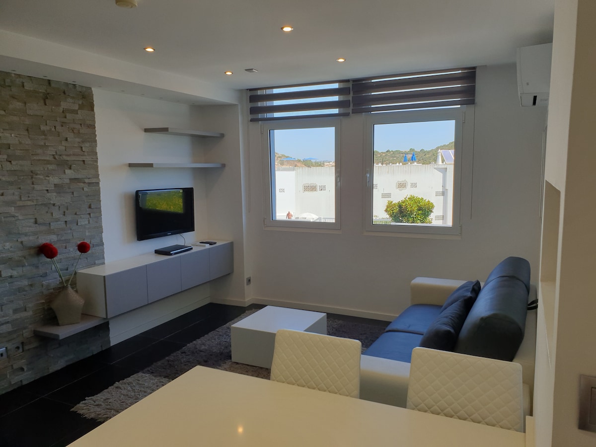 Apartamento completamente renovado, elegante y minimalista para que disfrutes de tus vacaciones. Apartamento de 1 dormitorio, baño con ducha, sala de estar con sofá cama, cocina equipada, LCD 43" en sala de estar y dormitorio, TV por cable, wifi y Netflix y Disney+.
