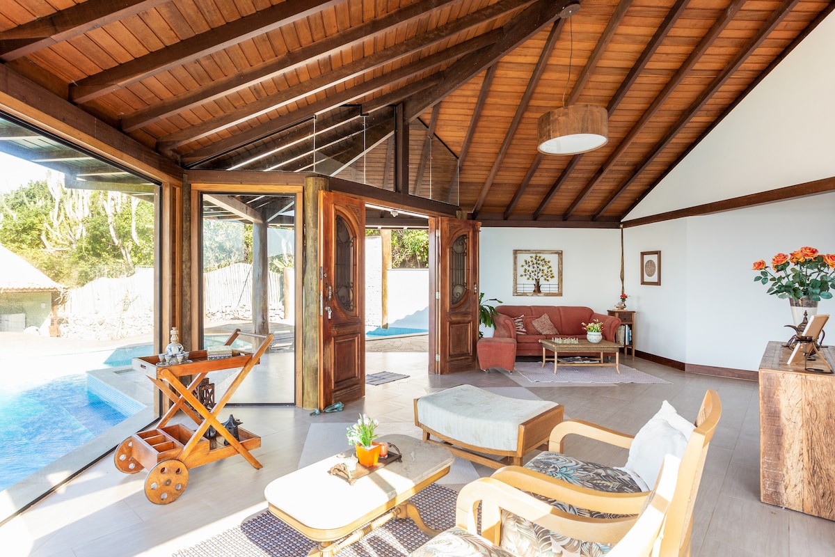 Retiro exclusivo en Pontal do Atalaia, rodeado de naturaleza y con vistas al mar. A pocos minutos de Praia Brava, este es el lugar para despertarse con el canto de los pájaros, sentir la brisa del mar y disfrutar de una piscina privada, sauna y un jardín espacioso y tranquilo. Perfecto para aquellos que buscan días tranquilos, privacidad y esa rara sensación de encontrar un escondite especial para relajarse, leer, cocinar, tomar el sol y experimentar Arraial a un ritmo más lento.