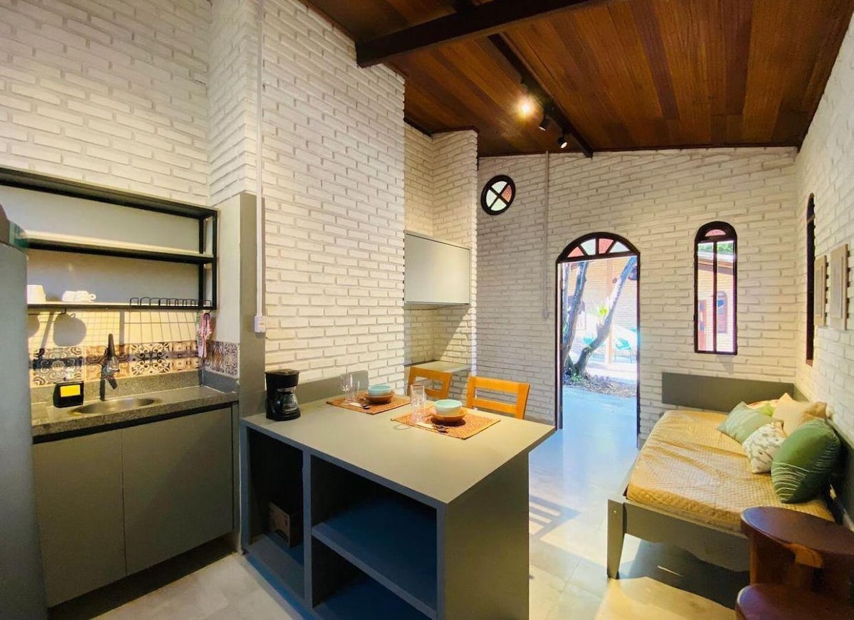 Imagina comenzar el día tomando un café en el balcón y en solo unos pasos, elige entre la playa o el encantador pueblo. Nuestro pueblo, decorado con buen gusto, ofrece un ambiente acogedor, amplitud y mucho estilo en un condominio con jardín, seguridad y estacionamiento. Wifi rápido, mercado al lado y todas las comodidades para parejas, familias o amigos. Un refugio espacioso, recientemente renovado y encantador para relajarte y vivir lo mejor de Praia do Forte.