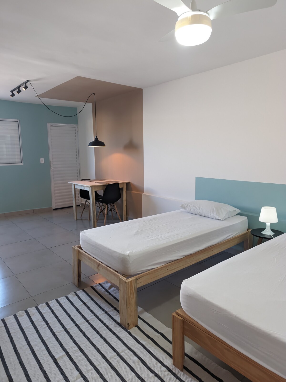 Espacio compacto, pero con toda la comodidad y tranquilidad que necesitas para pasar una noche o incluso unos meses. Tiene 26 m2 con dos camas individuales, guacamayo para ropa, perchas, ventilador de techo, despensa, cocina con nevera, estufa, microondas, mesa, silla, utensilios de cocina, baño espacioso, lavandería colectiva en el condominio y estacionamiento gratuito en la calle.