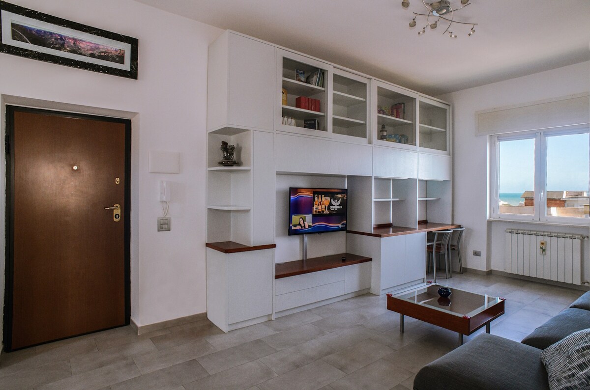 Appartamento nuovo e moderno, con tutti i comfort, si trova a pochissimi passi dal mare nel cuore del centro storico. Gode di una posizione strategica, vicinissimo a supermercato, bar, banca, l'appartamento è dotato di Wi-Fi, condizionatori e porta blindata. Adiacente alla Cattedrale, ottimo per le passeggiate sul lungomare e per gli imbarchi sulle navi da crociera è facilmente raggiungibile, sia la stazione ferroviaria per la città di Roma che per l'aeroporto di Fiumicino.