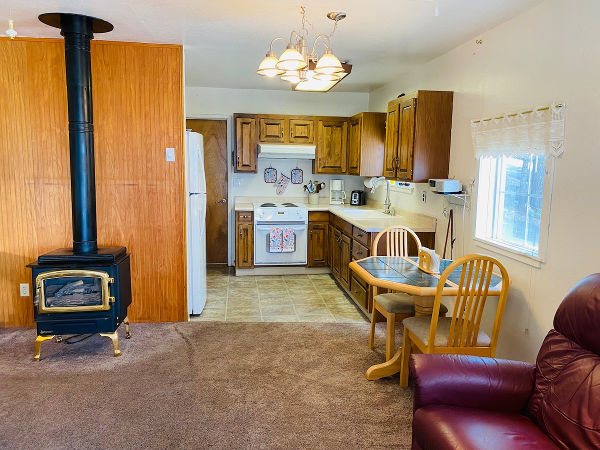Upgraded cozy Lake Cabin, with full amenities. 3 bed, 2bath huge deck for BBQ's and on the Lake. This is your perfect get-away to be able to relax and enjoy nature. Great fishing off our backyard, lake and on creeks. All one story plenty of parking! Ping Pong table, board games and movies. Bring the water toys. This is the place where kids forget about their IPADS and phones. Boat Dock is removed from Nov 1st to April 1st do to winter/snow conditions. Sorry for the inconvenience