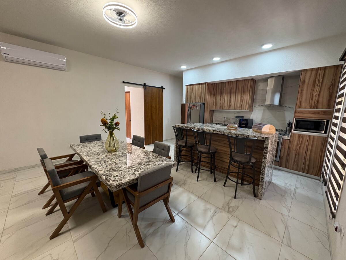 Disfruta de un cómodo apartamento privado ubicado a solo 3 min del centro de Calvillo. Cuenta con 2 recámaras con cama Queen size, TV de 49 pulgadas , wifi de alta velocidad, agua caliente y todas las comodidades para una estancia agradable. Estáras cerca de restaurantes y cenadurías tradicionales, ideal para disfrutar la gastronomía local y la tranquilidad del pueblo. Además, contamos con servicio de lavandería con descuentos especiales para huéspedes.