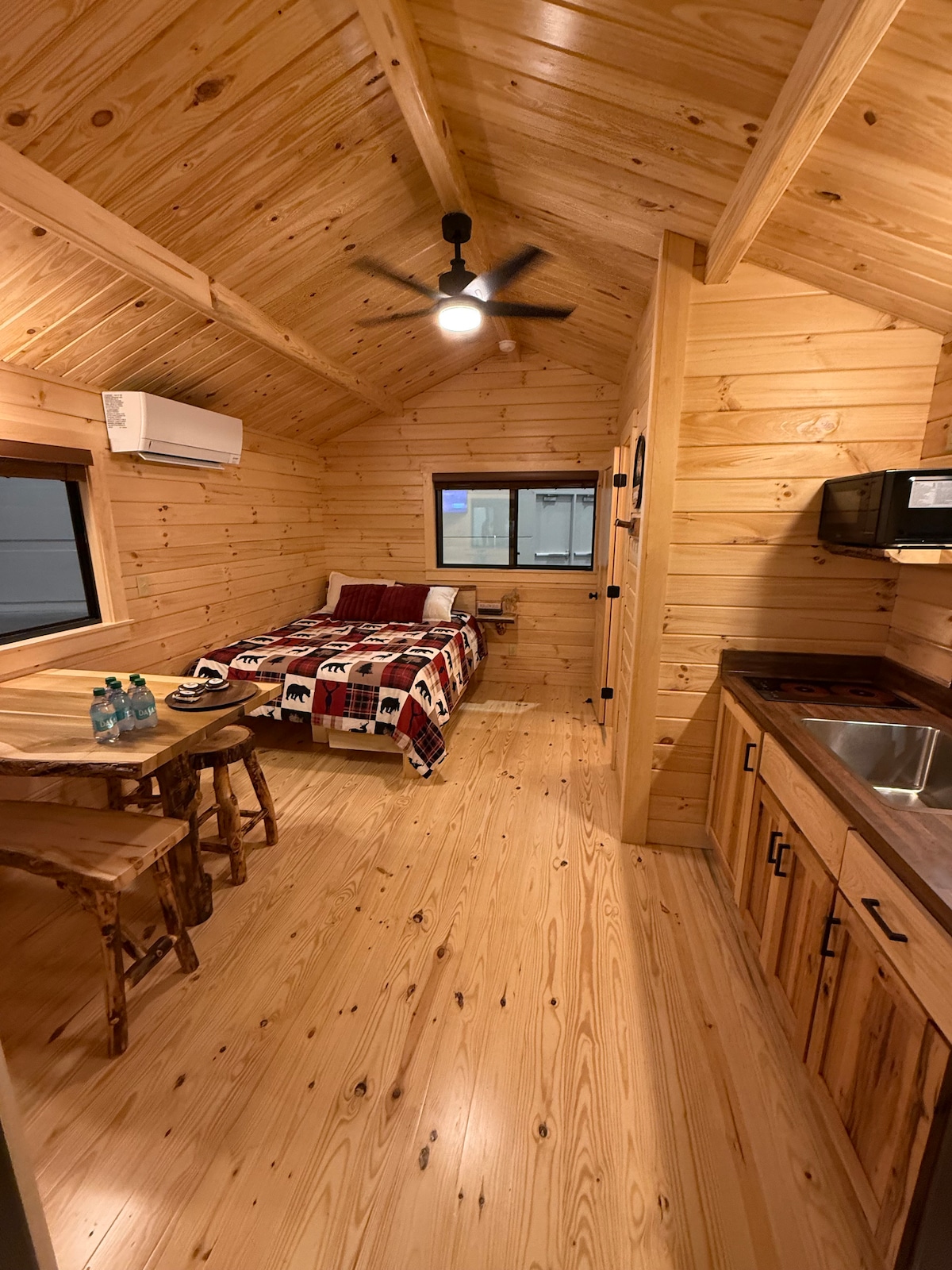 ¡Ven a ver cómo es vivir en una casa pequeña! Esta pequeña y linda casa de campo está situada junto a un gran manzano. Nuestra cabaña rústica con cama tamaño queen es una pequeña escapada linda y relajante para dos personas con un gran porche cerrado. Estamos ubicados a lo largo del sendero principal de vehículos todoterreno, ¡solo tienes que entrar! Hay treinta y siete acres con rutas de senderismo en todas partes, y Big Brook limita con un lado de la propiedad. ¡Disfruta de nuestra escapada al norte de Maine!