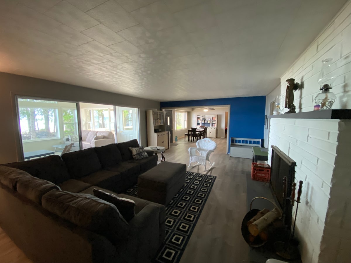 1 dormitorio en la planta baja (completo), 2 en la planta superior (doble con camas nido y king) muelle de 100 pies en junio-septiembre 20. Se admiten perros y niños, pero ten en cuenta: acceso al agua, escaleras empinadas, no hay valla que rodee la propiedad y la casa no es a prueba de bebés. Parque estatal de carretera de MI al lado. Se proporciona una puerta para bebés, pero eres responsable de instalarla si es necesario. Contamos con 2 cámaras de seguridad, una con vistas a la entrada y otra con vistas al lago/terraza. Tenemos agua de pozo y un sistema séptico. No hay aire acondicionado central, las unidades de dormitorio están instaladas para el verano.