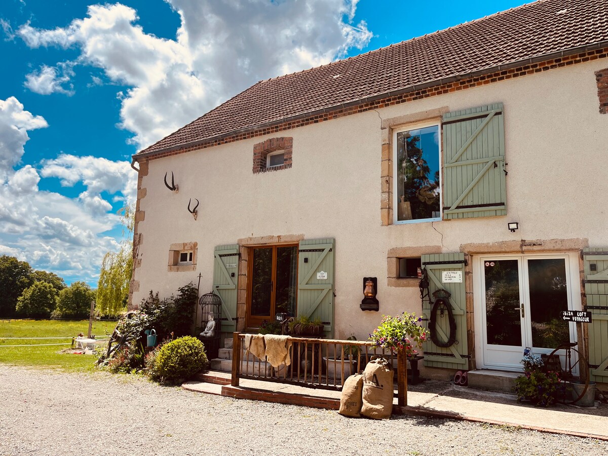 Ideal para enamorados o para 2, si necesita desconectar en la tranquilidad del campo de Berry, el acogedor corral le satisfará con su baño nórdico y su sauna calentada con fuego de leña (a voluntad y privado, leña incluida). Tendrá todas las comodidades acogedoras y románticas con su cama tamaño queen y su ducha doble. El entorno es muy tranquilo, la terraza no tiene vecinos y hay campos que se pierden en el horizonte con el paso de los corzos.