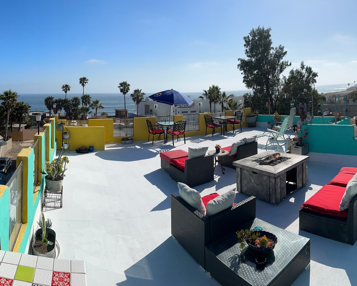 Espacio cómodo y acogedor, incluye una terraza privada extra grande en la azotea con chimenea de gas y barbacoa. Increíbles vistas del Océano Pacífico, El Coronel Mtn, K38 Jesús, Sand Dunes & Sunsets. Camina al lado de Ollie's Brick Oven Pizza, Brown Dog Gelato, cerca de Col. Surf Craft Brewery. Cerca del surf, las playas, la aldea de la langosta de Puerto Nuevo, las tirolesas, las compras, el senderismo. 5 minutos a Puerto Nuevo, 15 min a Rosarito, 45 minutos a Ensenada y Valle de Guadalupe.