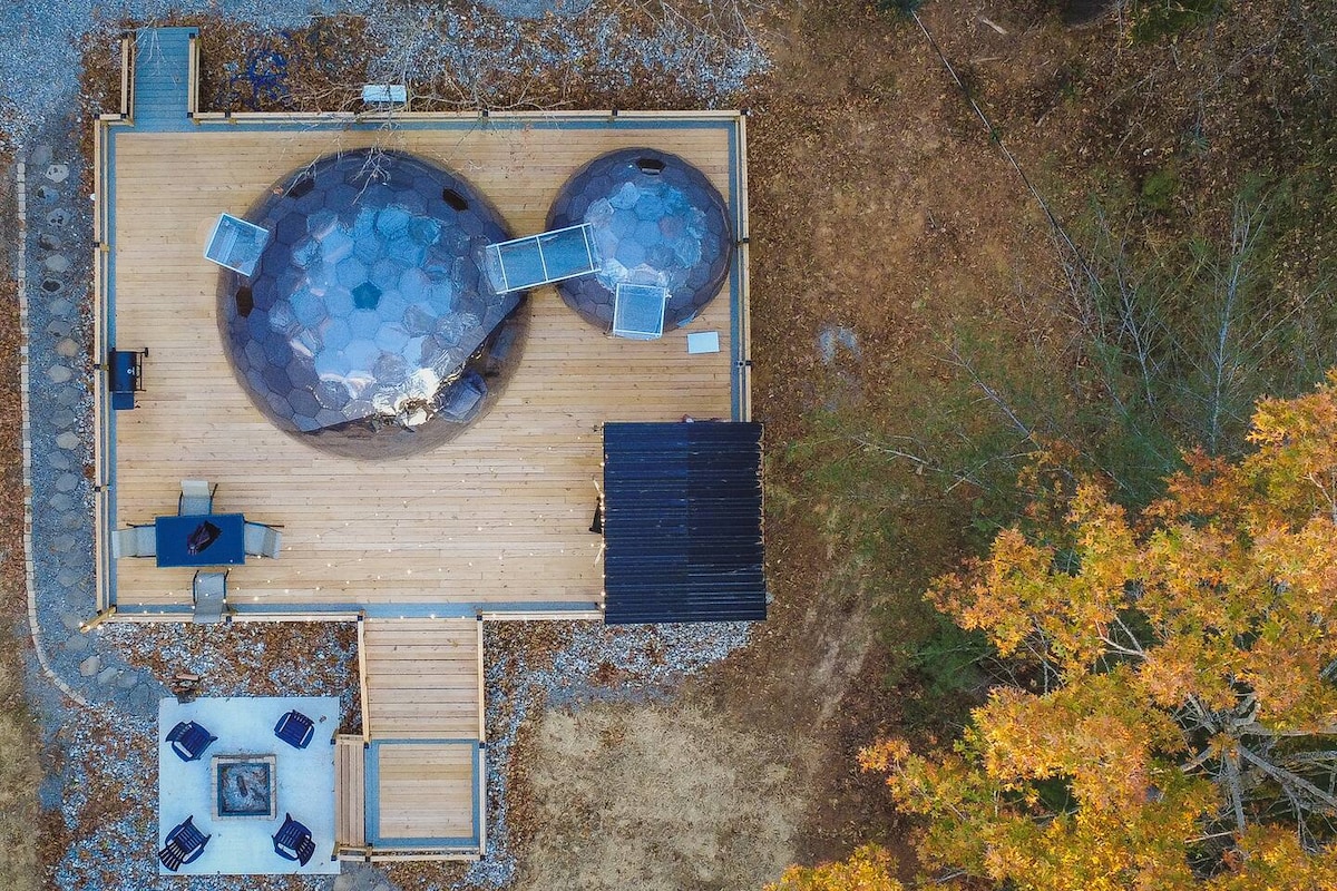 Adventure meets comfort at the Space Cowboy Lake Domes — the ultimate glamping experience where rustic frontier charm collides with sleek modern design. This unique double-dome retreat features a full kitchen, bathroom, and space for up to four guests across two connected domes — one with a cozy living area and sleeper sofa, the other with a private queen bedroom. Step outside to your expansive lakefront deck with a hot tub, fire pit, grill, outdoor shower, and private lake access and kayaks.