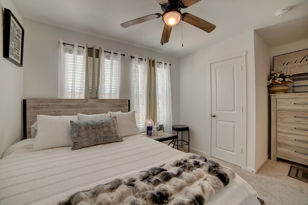 ¡Te damos la bienvenida a nuestro lujoso Airbnb para familias! Nuestro alojamiento cuenta con todos los servicios que necesitas para disfrutar de una escapada cómoda y agradable con tus seres queridos. Mira películas y programas de televisión en la enorme pantalla de 85 pulgadas, relájate en el jacuzzi o juega en el patio trasero cubierto de hierba. Incluso tenemos un acogedor rincón de lectura para momentos tranquilos. Ubicado cerca de Legacy West, The Star, RoughRiders Baseball y muchos centros comerciales, nunca te faltarán cosas que hacer. ¡Reserva tu alojamiento hoy mismo y empieza a planificar tus mejores vacaciones!