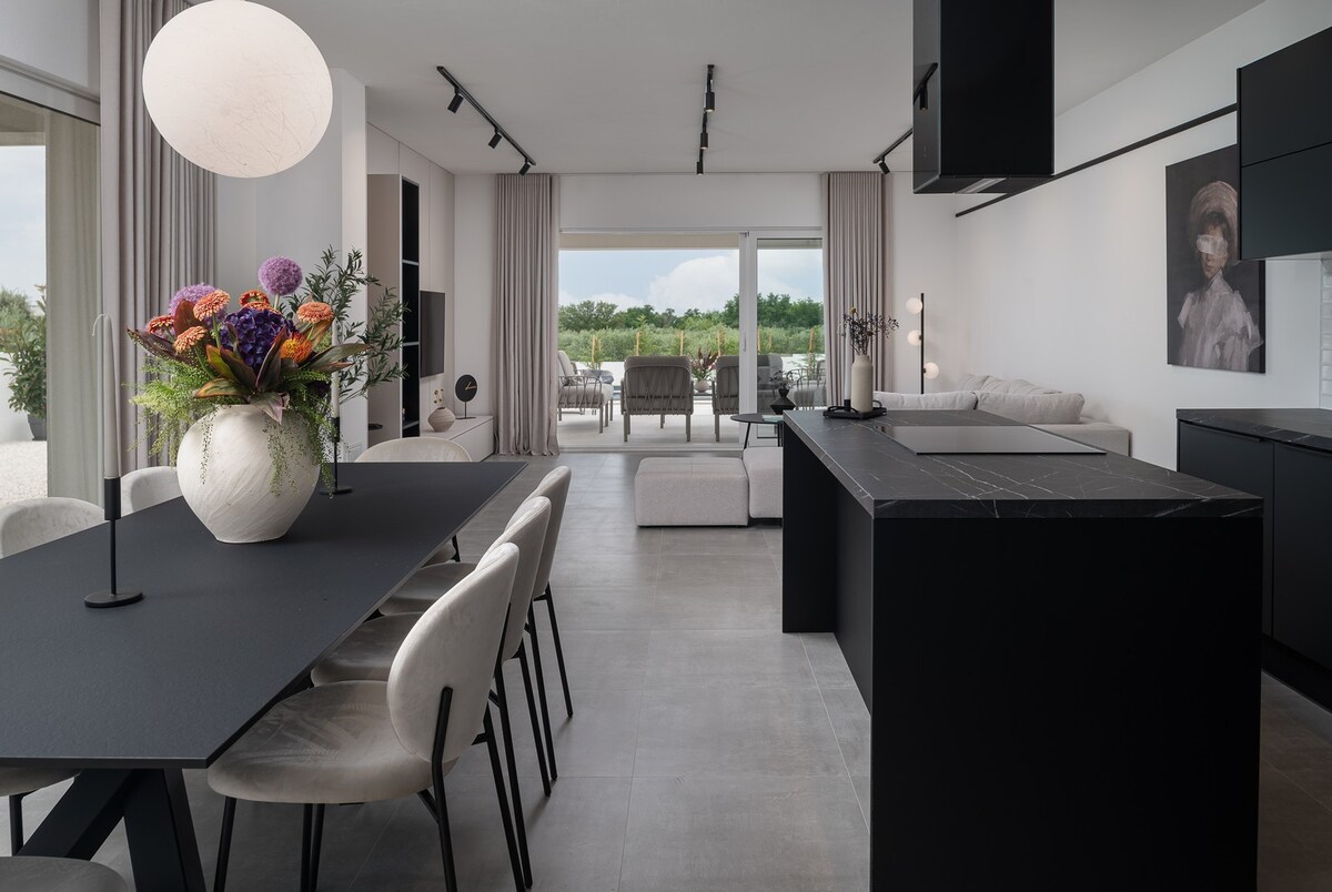 Villa Mariel moderna cerca de Zadar: piscina, jacuzzi, gimnasio