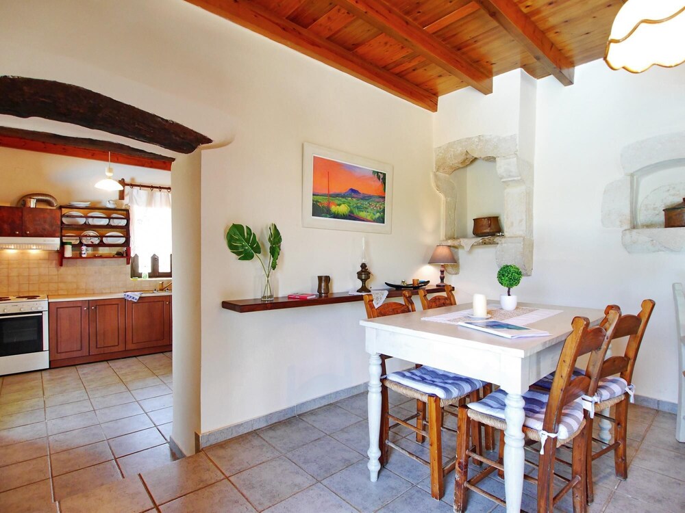 Esta impresionante villa de piedra de dos niveles está situada en el hermoso pueblo de Kaina, con increíbles vistas de la campiña cretense, entre dos hermosas ciudades, La Canea al oeste y Rehtymno al este. Su espacio es de 95 s.m., tiene 1 dormitorio grande, 1 baño, piscina privada y capacidad para alojar cómodamente hasta 4 huéspedes.