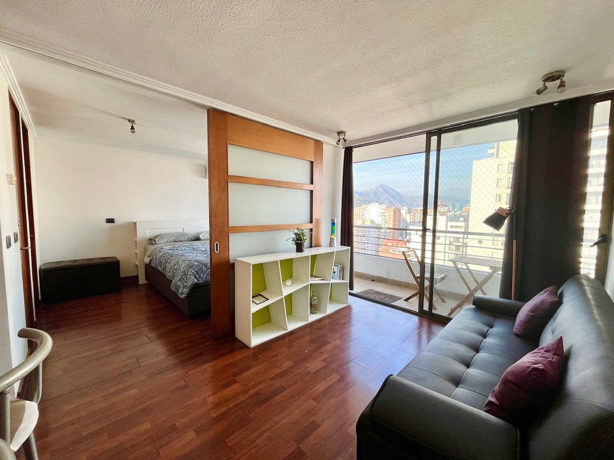 Moderno departamento en Bellavista/Providencia, a pasos del Metro Salvador. Ideal para parejas o viajeros de negocios. Cuenta con WiFi ultra rápido (561 Mbps), dormitorio luminoso con cama matrimonial, cocina equipada, living cómodo y balcón privado con vista a áreas verdes. Edificio con lavandería, ascensor y seguridad 24/7. Excelente ubicación cerca de Cerro San Cristóbal, Patio Bellavista y restaurantes.