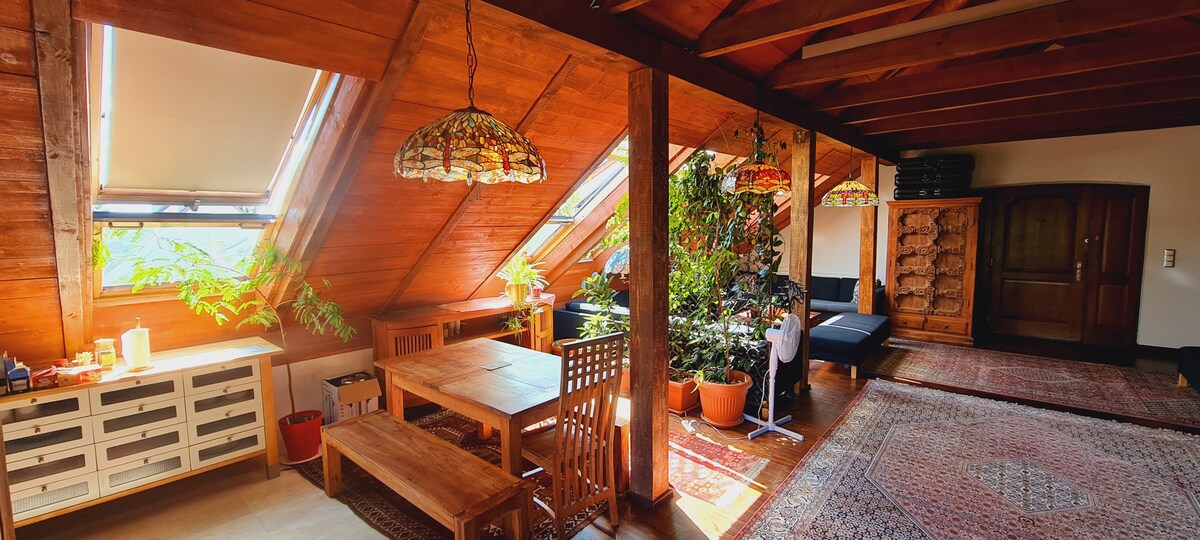 Cozy loft/ attic floor with 100m2 space where 4-6 people can stay. Decorated to be both comfortable and aesthetic. There is a bedroom with a double bed, a small space with twin beds, and a huge salon with two comfortable couches and a small bed. An antique indonesian coffee table can double as a work area. wi-fi is available. there is also a large terrace where you can get fresh air on sunnier and warmer days. we also provide a beachvolleyball court in our backyard for those who wish to play